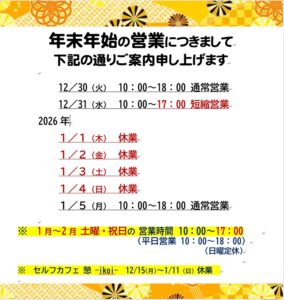 【店舗】休業:1/1(木)~4(日)